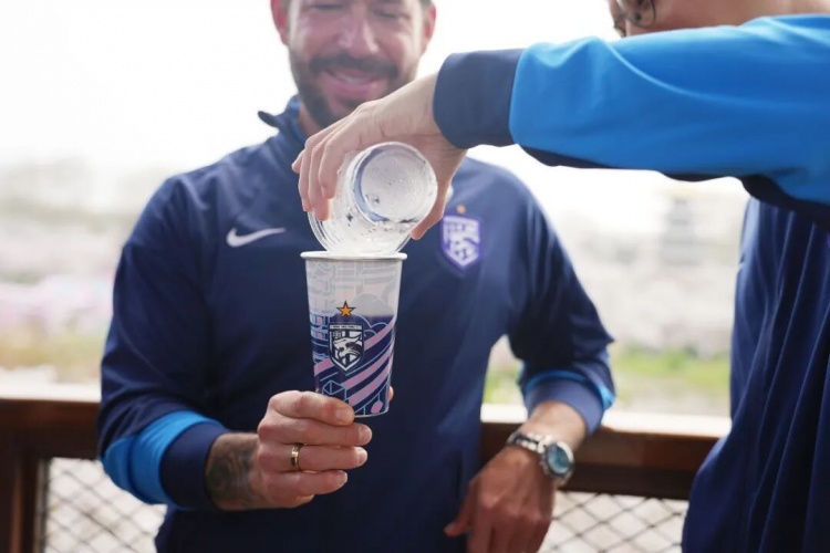 漫步樱园间,粉樱缀枝、春风拂面,莫拉对眼前的景色赞不绝口。游园过程中,他还在樱花丛下体验了俱乐部新款周边产品——樱花主题变色冷水杯,这款周边融合城市与樱花元素,巧妙的设计让他颇感新奇。