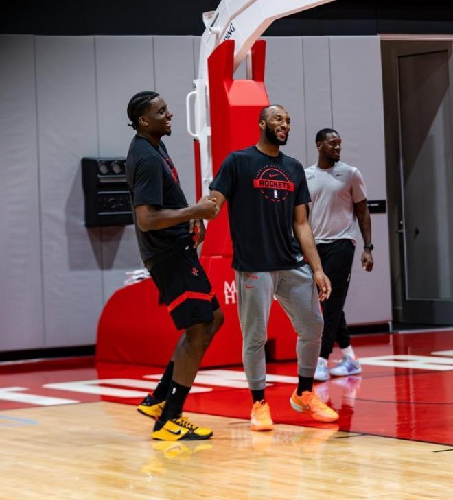 而奥科吉在首发阵容当中,虽然数据一般,不过他的作用极大。他不占球权,可以帮助阿门·汤普森去防守对方的箭头人物;在进攻端,他也可以为申京和杜兰特拉开更多的空间。一旦火箭队的申京和杜兰特遭遇对方的严密包夹,他们马上可以将球传给奥科吉,因为奥科吉本赛季是火箭队最好的三分射手之一,他的三分投篮能力不在谢泼德之下,让他出任首发也是一个非常合理的选择。